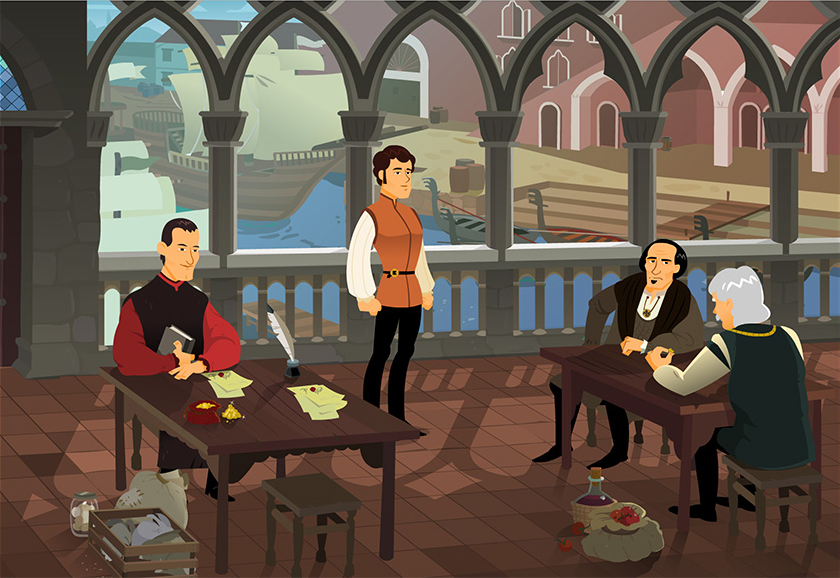 The game is based on the adventures of Carlo Vecchio, a young venetian merchant of the sixteenth century who struggles to move forward with a shipping business.