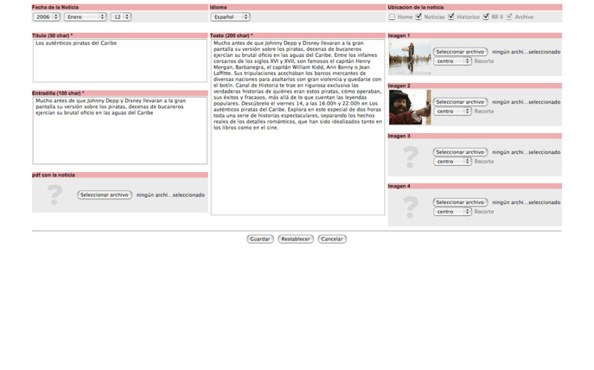The History Channel belonging to the “Chello-Multicanal” group wanted to participate in the new image of the group and integrate into their common BackEnd, to be able to share the databases of users, programs, etc.